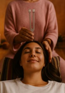 Die Schwingungen der Stimmgabeln dringen tief in den Körper ein, fördern die Durchblutung und
